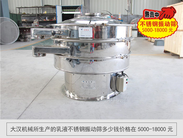 大漢機械所生產(chǎn)的乳液不銹鋼振動篩多少錢價格在5000到18000元。