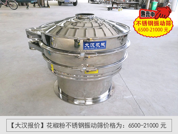 花椒粉屬于食品類添加劑物料,所以對于衛(wèi)生要求比較高,需要使用不銹鋼材質(zhì)的振動篩篩分,那么花椒粉不銹鋼振動篩多少錢一臺呢?