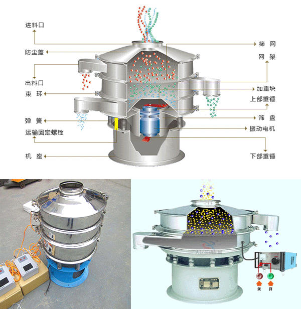 不銹鋼振動篩是一種高精度的篩分設(shè)備,采用立式電機作為激振源,電機上下兩端安裝有偏心塊,可將電機的旋轉(zhuǎn)運動轉(zhuǎn)變?yōu)樗酱怪眱A斜的三次元運動把這個運動傳遞給篩面。使篩面上的玉米淀粉被拋起跳躍運動從而達到對玉米淀粉進行篩選和分級的目的。