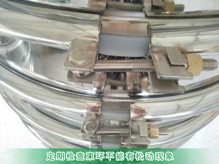 不銹鋼振動篩在換網、清洗、保養(yǎng)等過程中可能會造成篩框之間的束環(huán)松動,導致篩分過程中篩體晃動劇烈,從而造成出料口振動斷裂。需要定期檢查束環(huán)不能有松動現(xiàn)象。