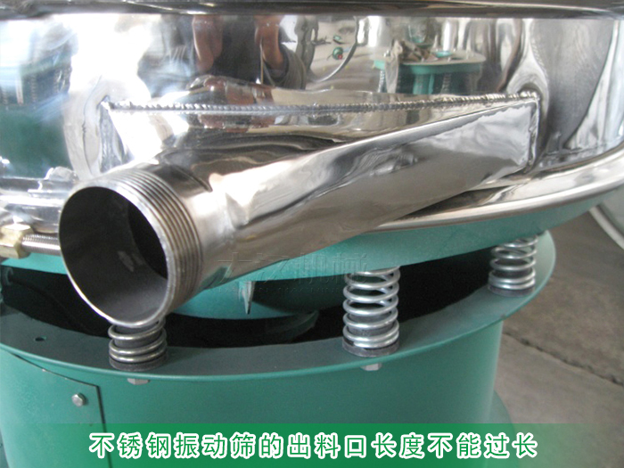 不銹鋼振動篩的出料口長度不能過長,如果過長會導致出料口沒有外力進行支撐,物料在排出時增加出料口的重量與磨損程度長時間會造成出料口斷裂,一般長度建議在200mm以內。