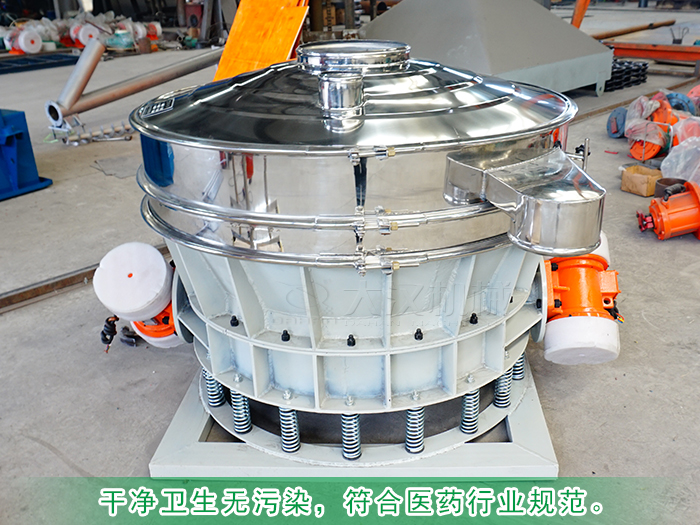 淀粉又叫做團(tuán)粉不溶于水,在和水加熱至60℃左右時則糊化成膠體,不容易被普通振動篩篩分,下面小編就為大家介紹一款專業(yè)的淀粉篩分設(shè)備-不銹鋼直排振動篩: