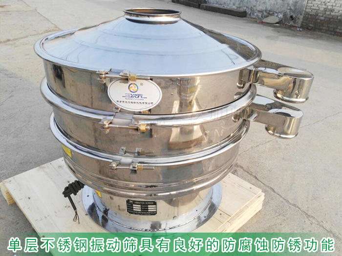 單層不銹鋼振動(dòng)篩采用304不銹鋼材質(zhì)精制而成,具有良好的防腐蝕防銹功能,也可耐高溫,內(nèi)外拋光打磨處理,內(nèi)部無焊接點(diǎn),表面平整無凹陷或高低起伏的波浪面,無扭曲變形的現(xiàn)象,整機(jī)拆卸方便減少篩分除雜后清洗消毒的難度方便清理。