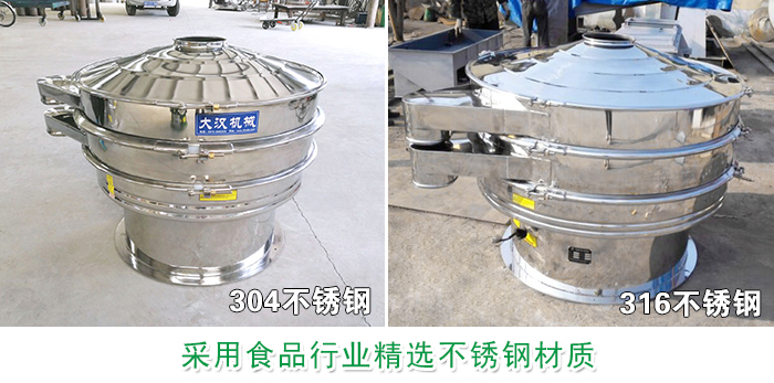 不銹鋼振動篩采用優(yōu)質304、316不銹鋼材質,可有效針對屬于食品行業(yè)類的玉米粉,確保篩分過程中的衛(wèi)生型與無污染性, 整個篩機結構分為兩種,一種是整機均采用不銹鋼制成,另一種是與物料接觸不分為不銹鋼材質,底座為碳鋼材質,經(jīng)過內(nèi)外拋光后的不銹鋼表面光滑無毛刺現(xiàn)象,完全符合國家對于食品行業(yè)的制定標準。