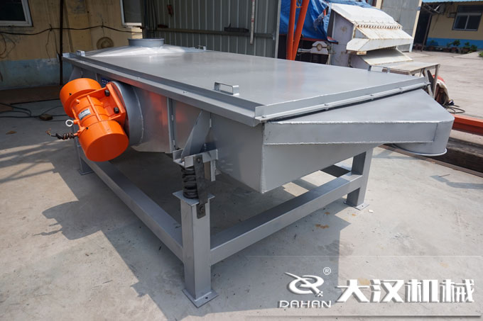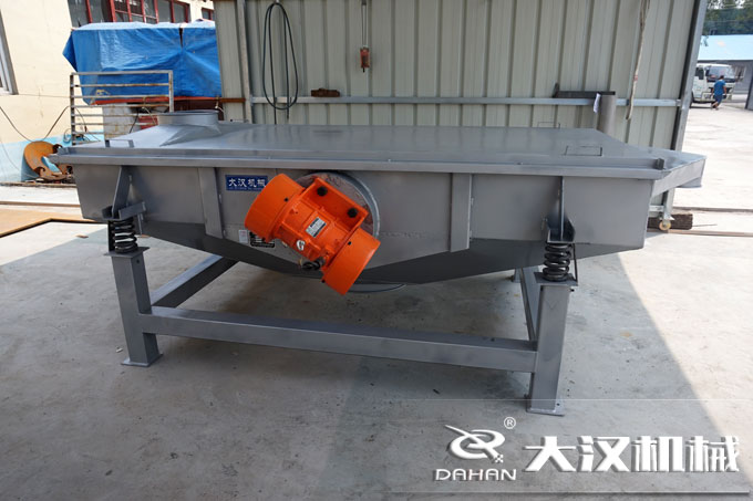 DZSF系列直線振動(dòng)篩(長方形振動(dòng)篩)為雙振動(dòng)電機(jī)驅(qū)動(dòng)。當(dāng)兩臺(tái)振動(dòng)電機(jī)做同步、反向旋轉(zhuǎn)時(shí),其偏心塊所產(chǎn)生的激振力在平行于電機(jī)軸線的方向相互抵消,在垂直于電機(jī)軸的方向疊為一合力,因此篩機(jī)的運(yùn)動(dòng)軌跡為一直線。兩電機(jī)軸相對(duì)篩面在垂直方向有一傾角,在激振力和物料自重力的合力作用下,物料在篩面上被拋起跳躍或向前作直線運(yùn)動(dòng),從而達(dá)到對(duì)物料進(jìn)行篩選和分級(jí)的目的。適用于粒度在0.074―5mm,含水量小于7%,無粘性的各種干式粉狀或顆粒狀物料的篩分。大給料粒度不大于10mm.。